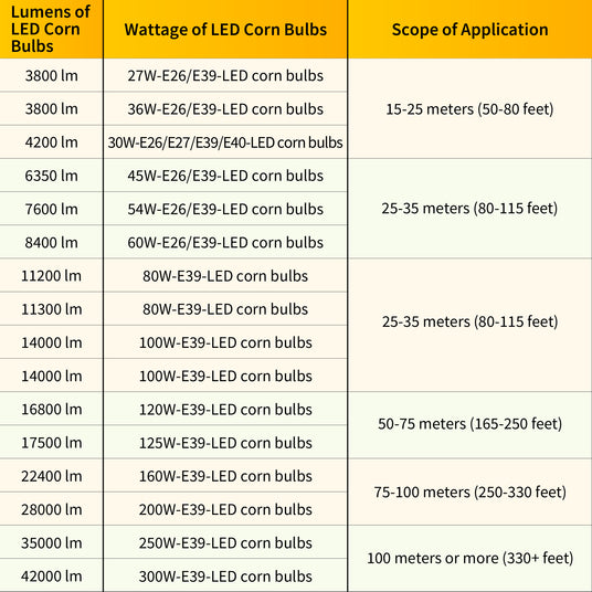 The picture on the left is Lumen chart about the recommended use of corn lamps.