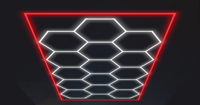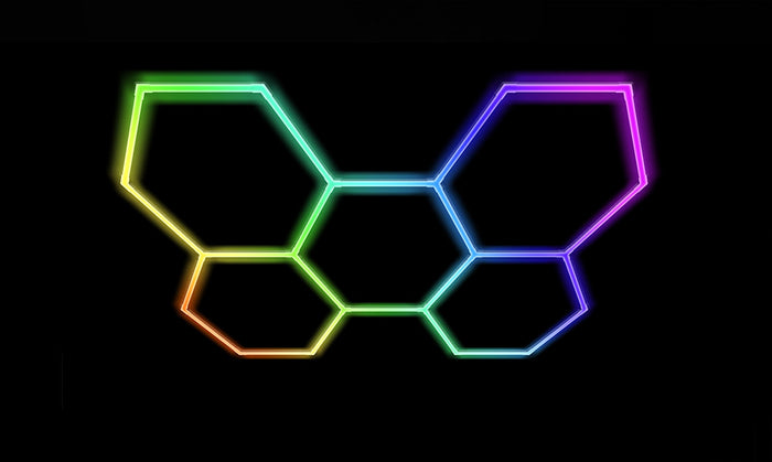 LED hexagon lighting is modular garage light fixtures designed in a hexagonal shape, or some people prefer calling it honeycomb lighting. They are often both functional and decorative, providing bright light while adding a modern and unique aesthetic to any space.What’s the difference between RGB LED Hexagon Lights and normal LED Hexagon Garage Lighting Fixtures?