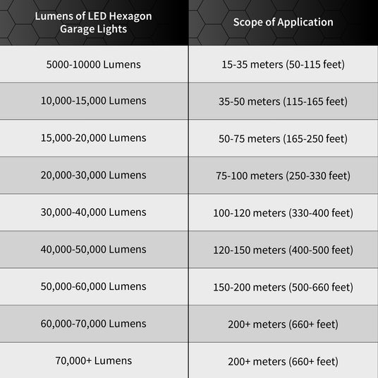 Therefore, the table is the reference for considering which hexagon LED garage lighting fixtures are more suitable for you, but you are still subject to actual demand.