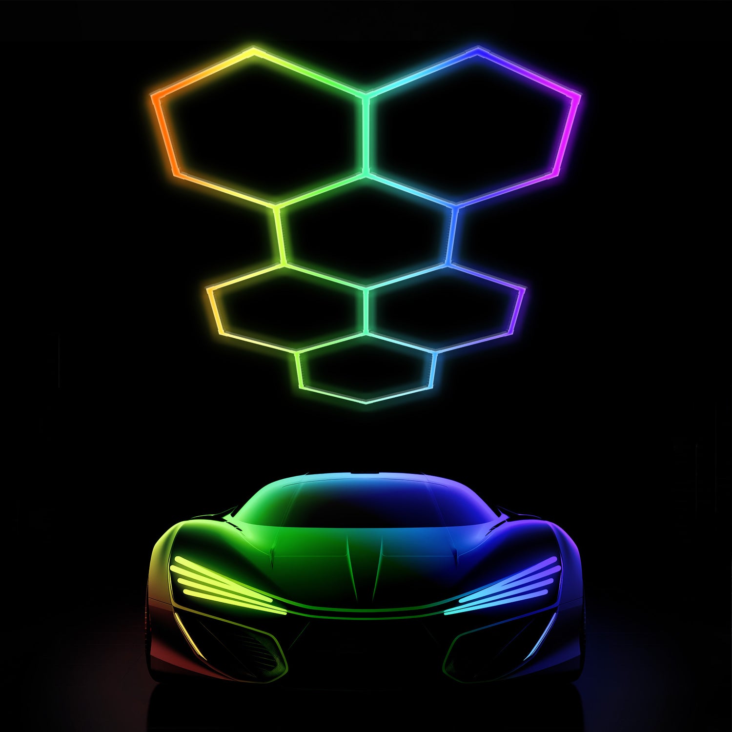 Dynamic Colorful Lightning: These hex lighting garage features more than 360 modes, ranging from solid colors such as red, yellow and blue to mesmerizing multi-color effects. They are also available in a variety of combinations to suit different environments and atmospheres, such as the design of a space, a bar, or a game room, ensuring a brightly illuminated and immersive experience.