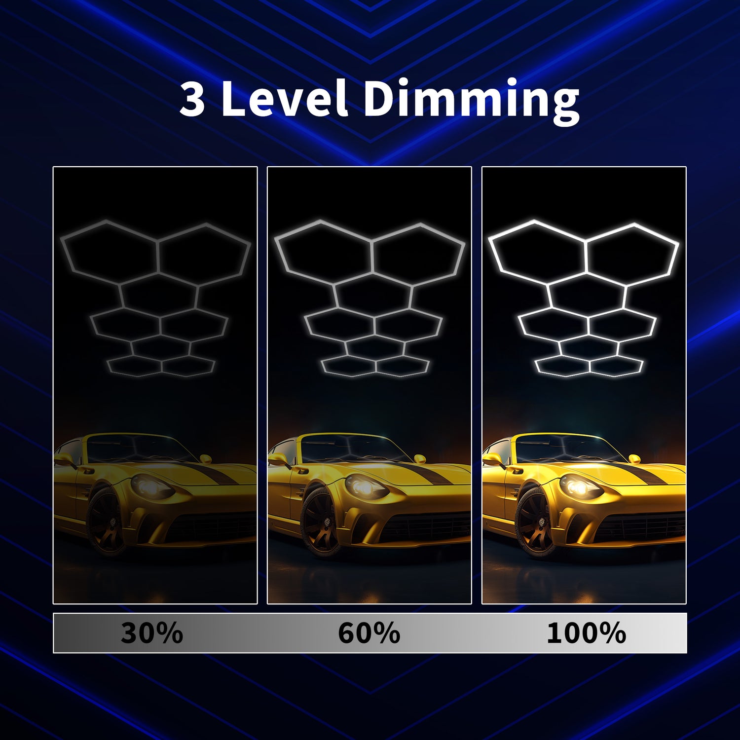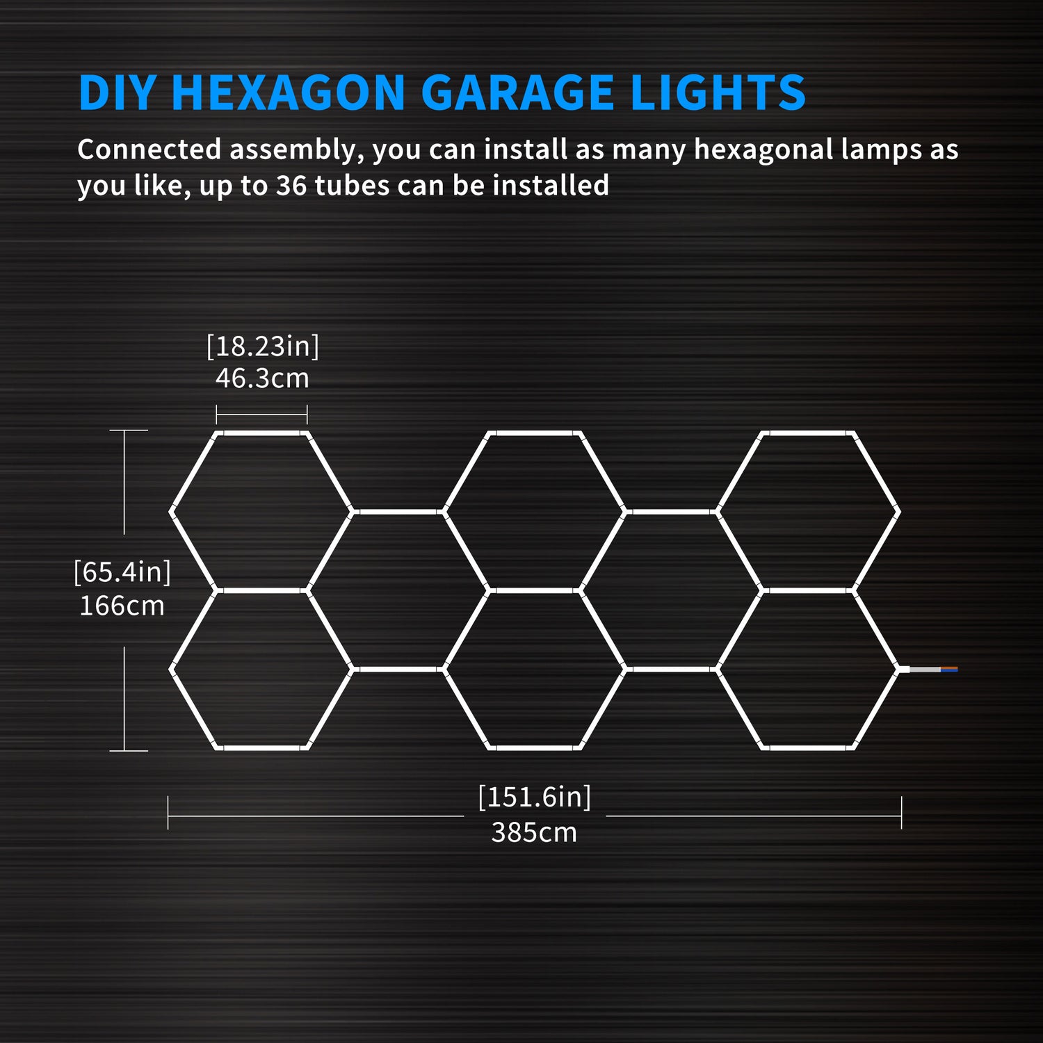 Dimmable LED Hexagon Garage Lights 8 Hex