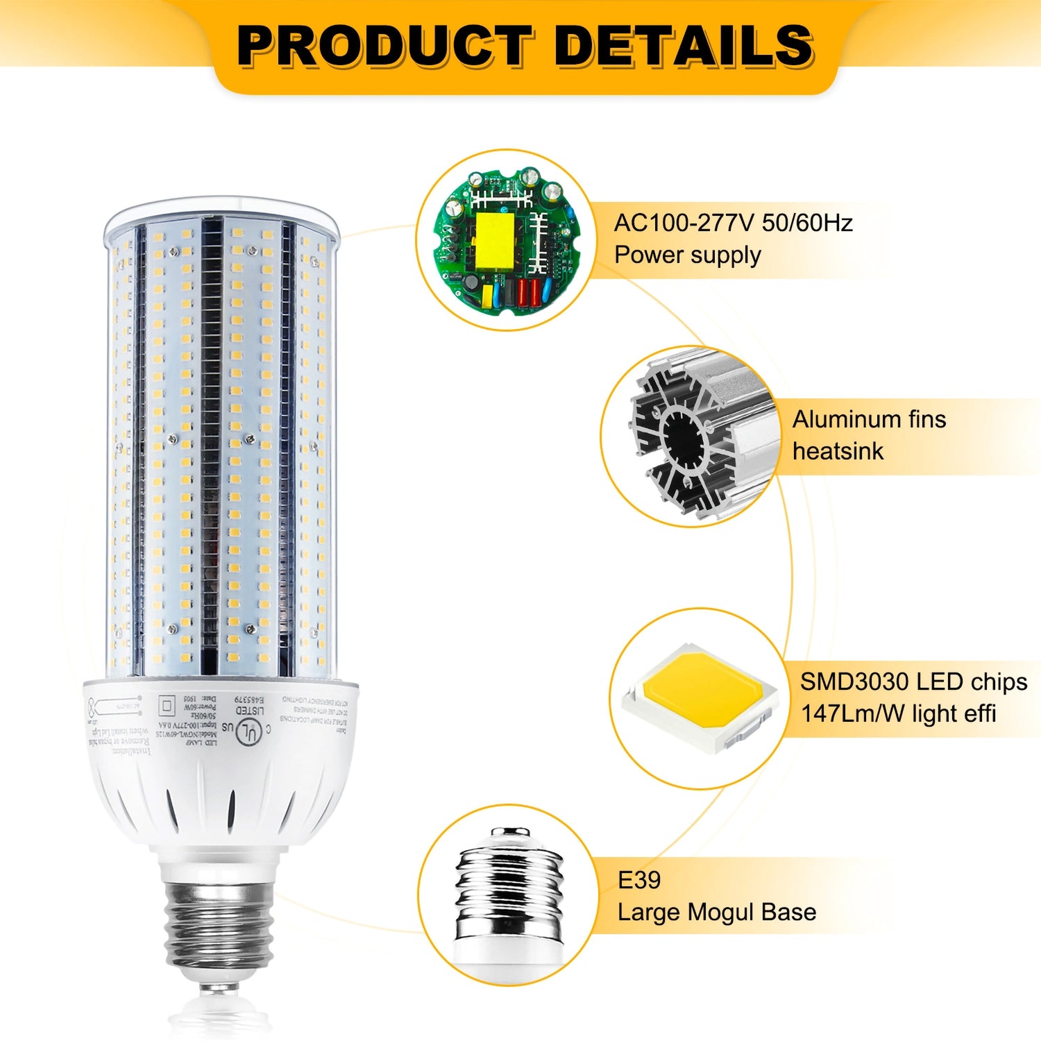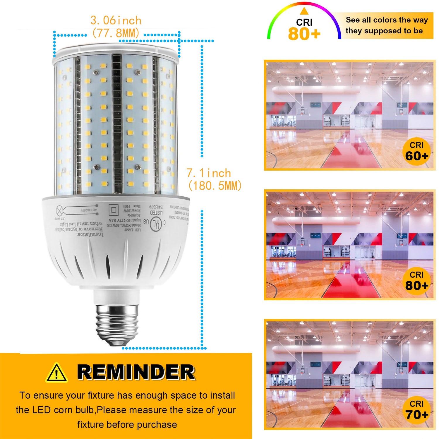 High Brightness: LED corn bulbs are highly effective for bright illumination, providing 4200lumens and 5000k Daylight White LED corn light bulb. At the same time, the 360-degree beam angle provides dead-angle-free illumination in bulb of corn. Moreover, they are energy-efficient and economical because they provide a large amount of light while consuming less power, and are designed to ensure even light distribution over large areas.