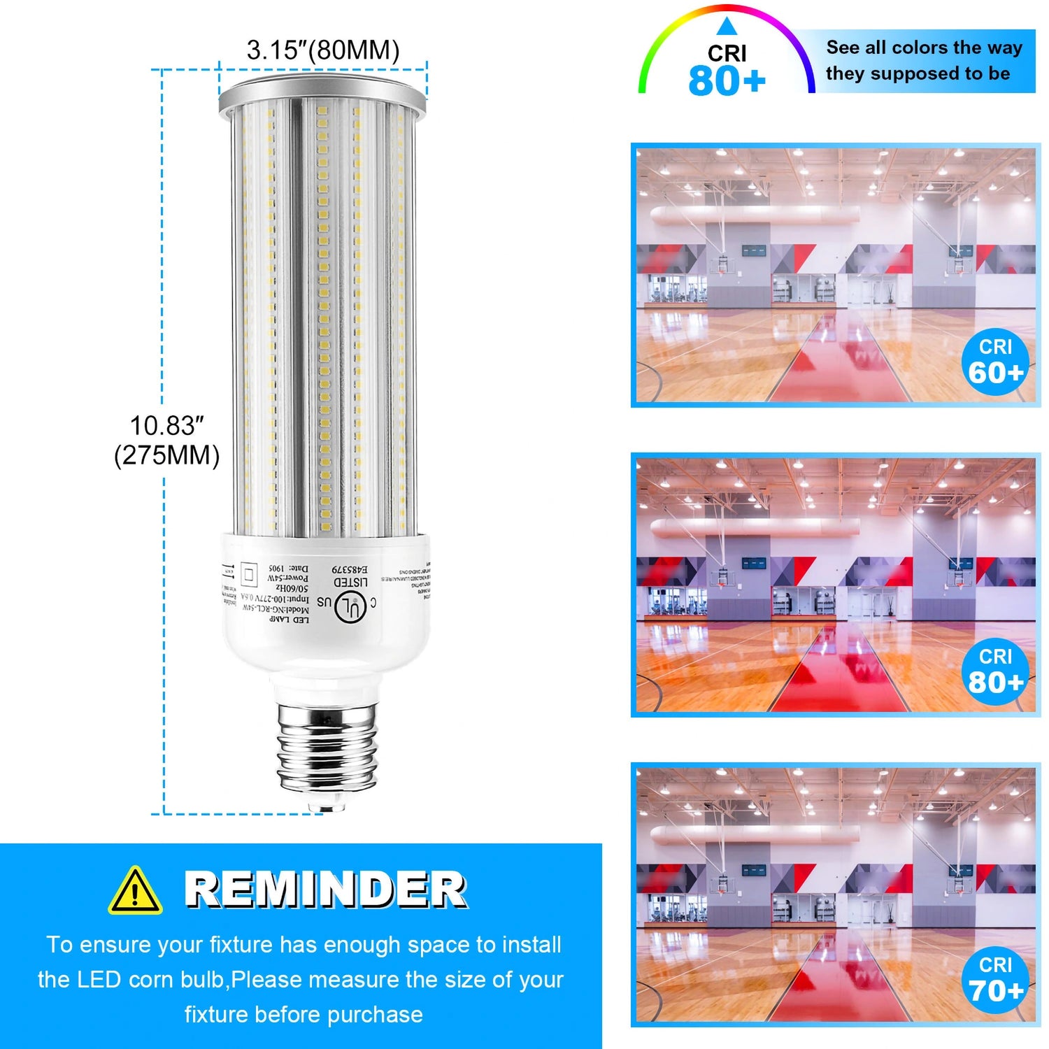 High Brightness: These corn cob bulb provides 6350 lumens of brightness and 5,000 K of daylight white light. The 360-degree beam Angle ensures full coverage of all missing light areas, eliminating dark spots and providing illumination. What's more, they are energy efficient and economical, consuming less power while providing a high light output, making corn cob led bulb ideal for large areas and long-term lighting.