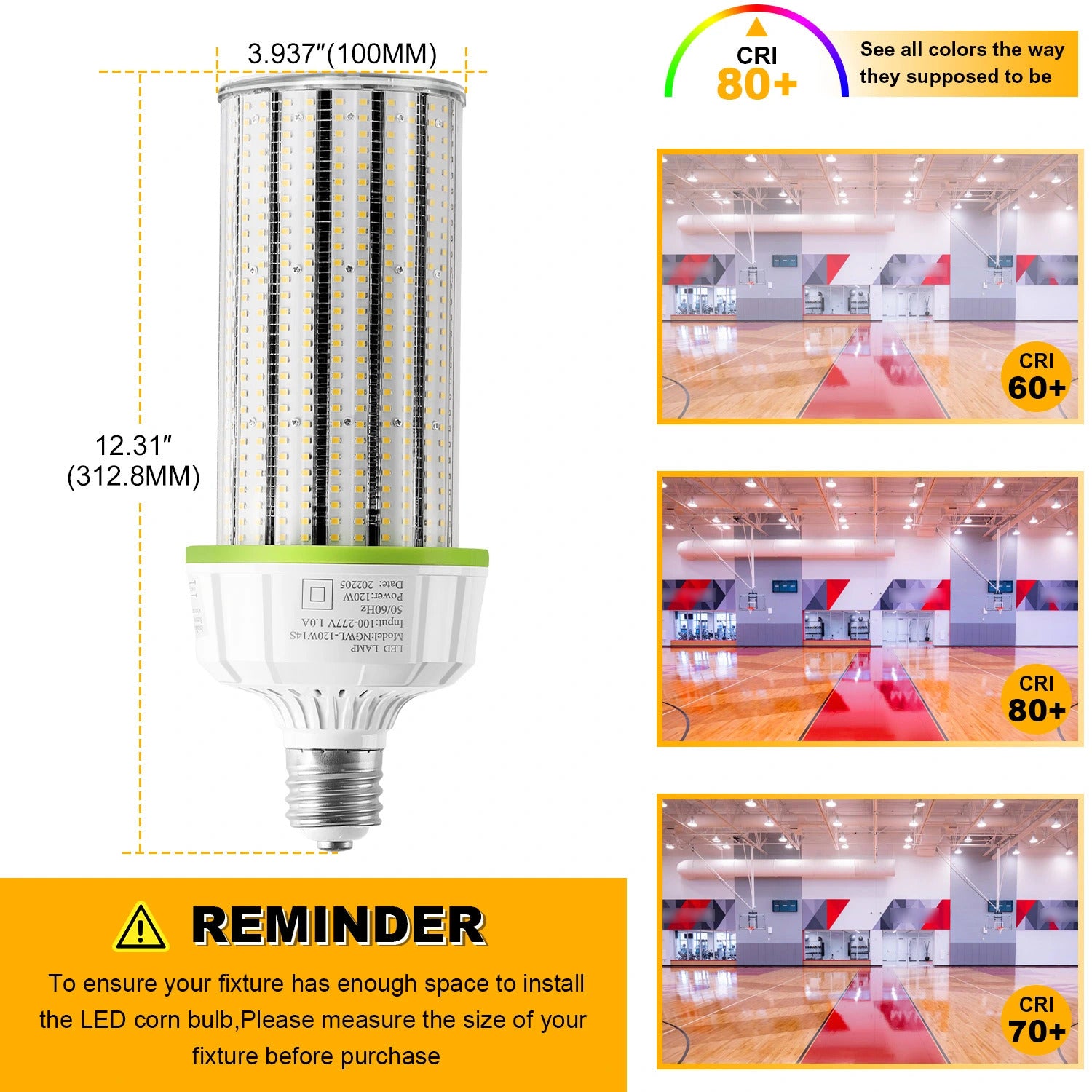 | Input Voltage | 110-277V | Color Rendering Index | >80 |