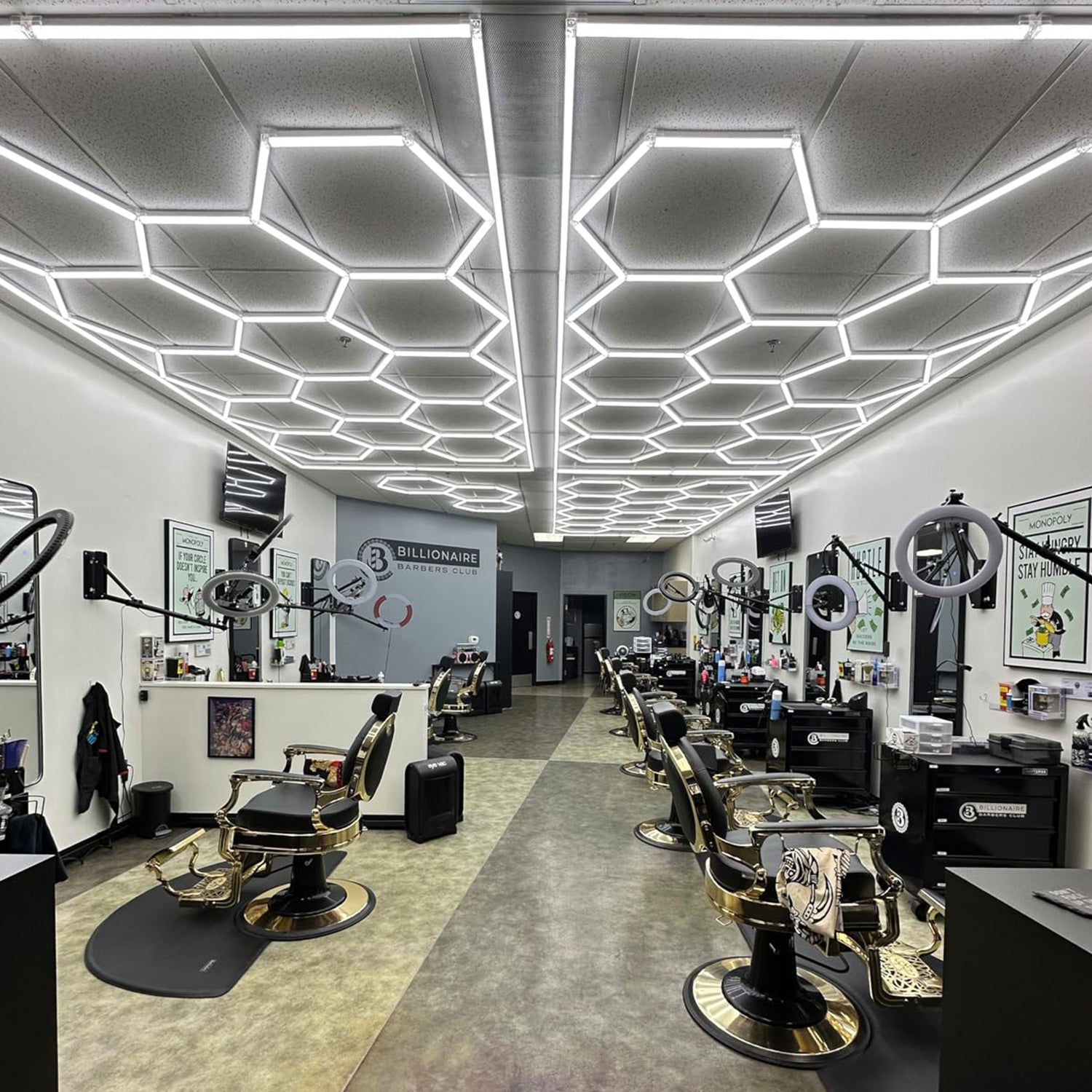 Excellent brightness: Hexagon lighting fixture is designed for a variety of uses including garages, basements, warehouses, art spaces, and other interior spaces due to their bright illumination and consistent brilliance. Its 110 lumens per watt of 6500K cool white light ensures consistent brightness without causing eye fatigue and has become increasingly popular with consumers in recent years.