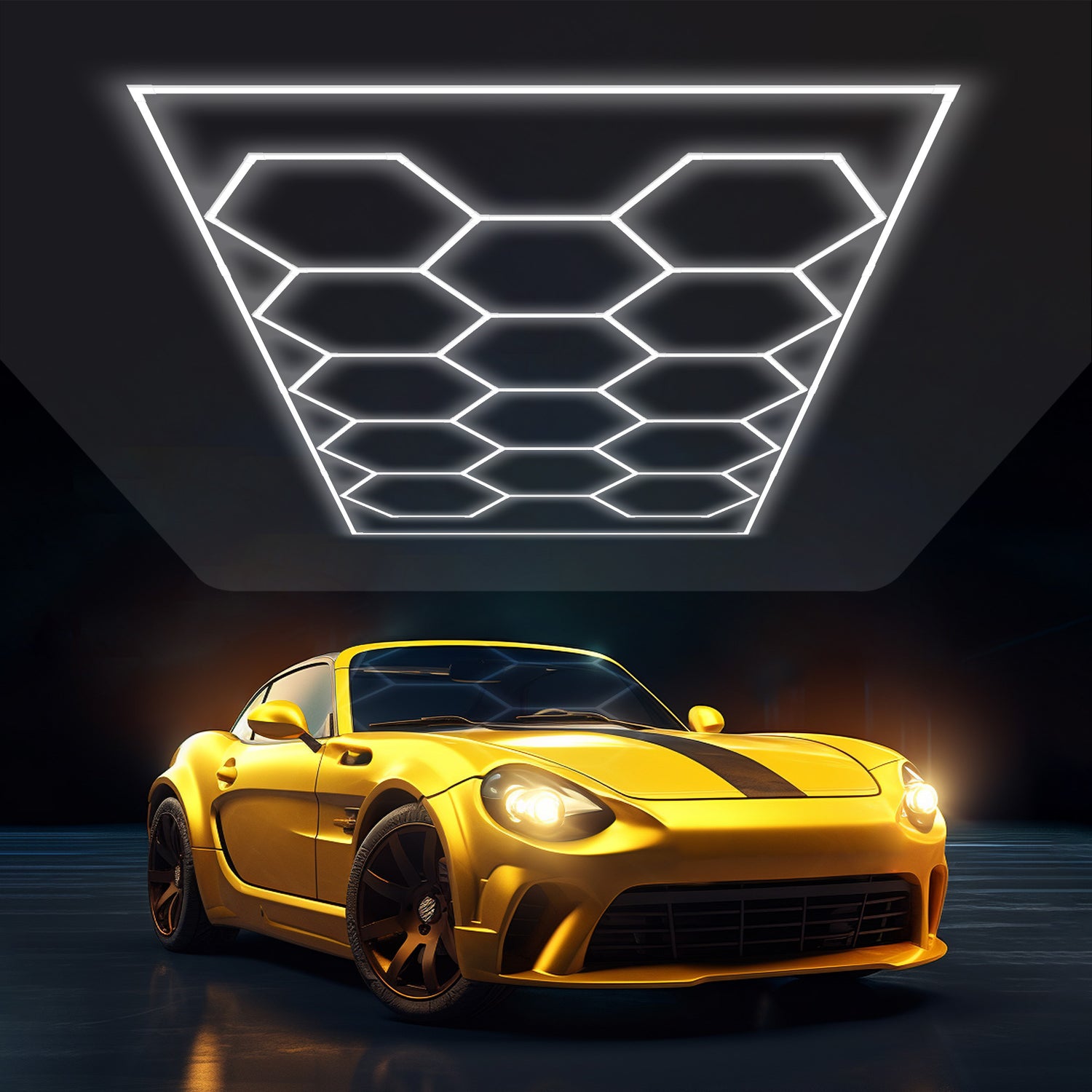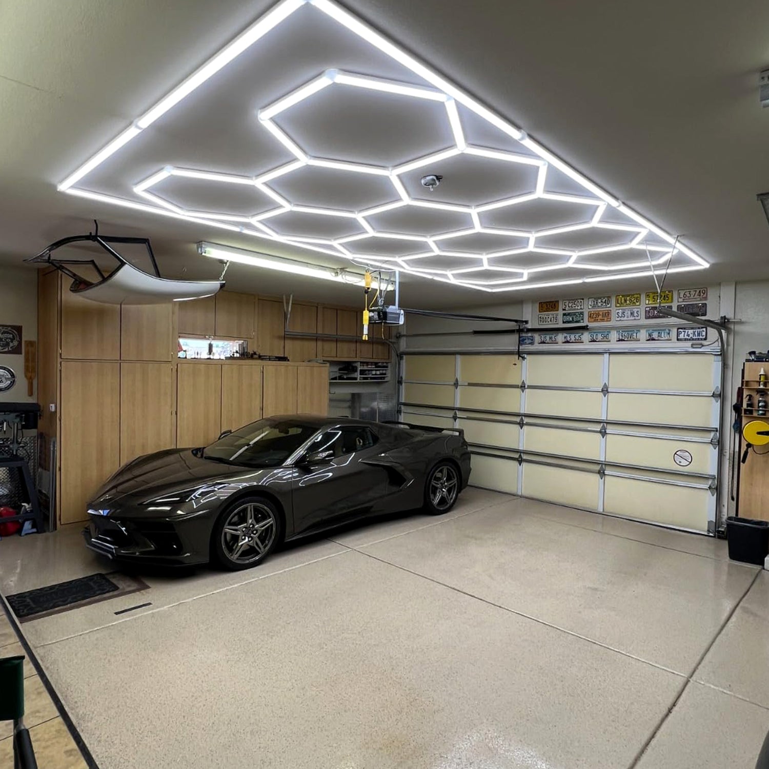 LED Hexagon Garage Lights 14 Hex with White Border - 6500k / 14 Hex is backordered and will ship as soon as it is back in stock.