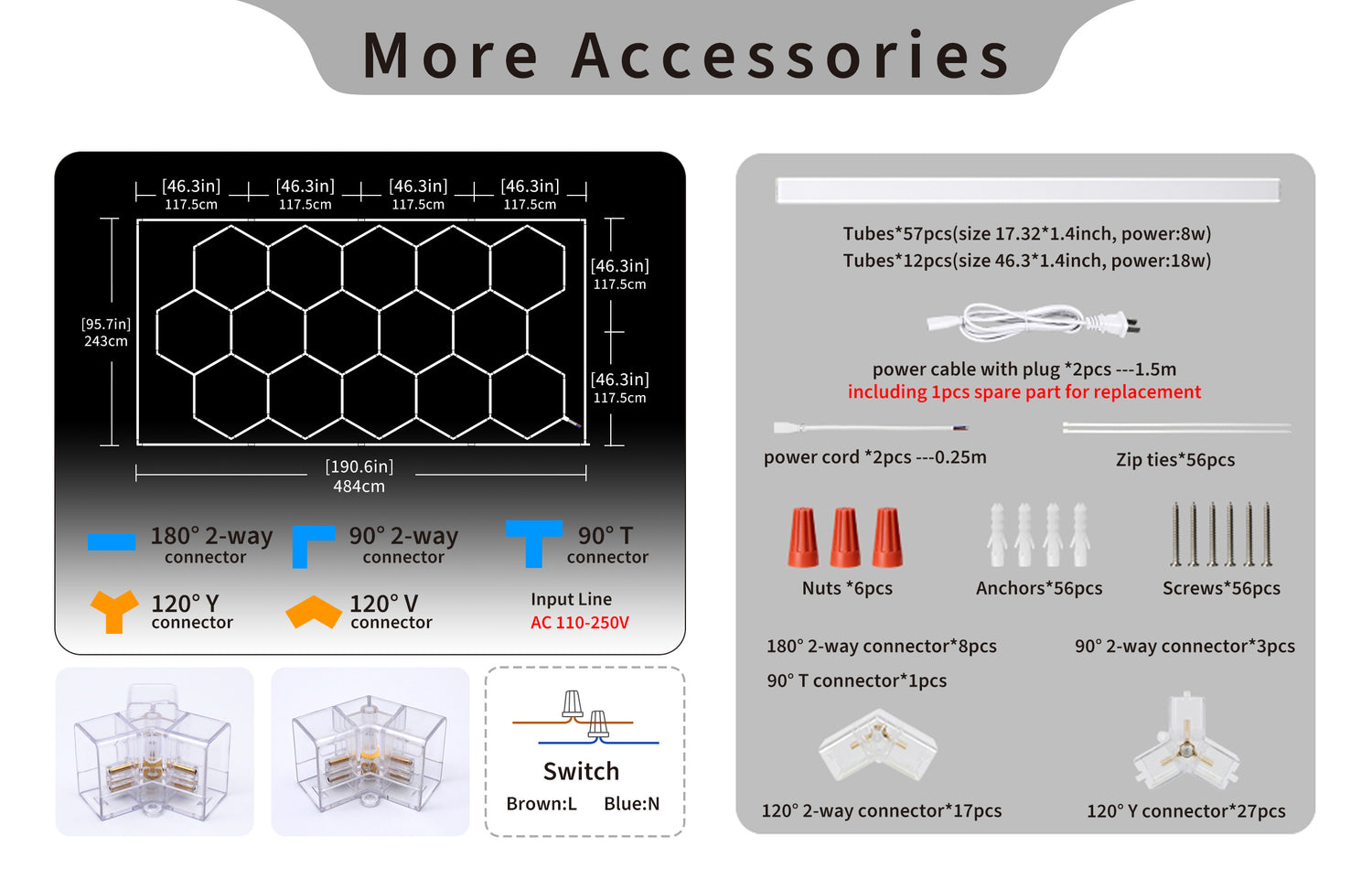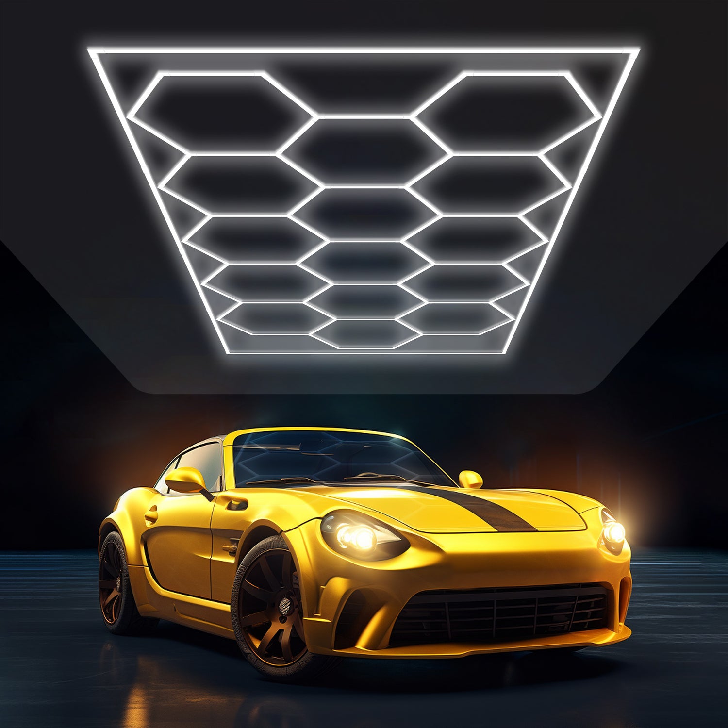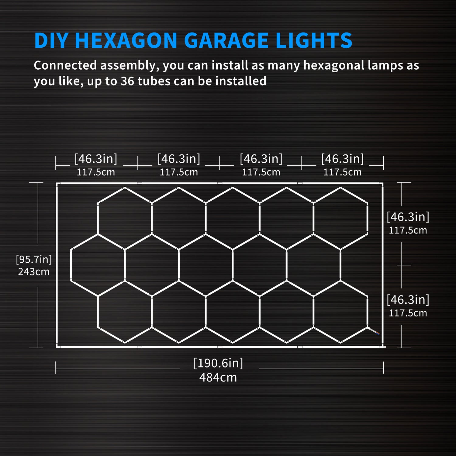 Excellent brightness: Hexagon light garage provides excellent lighting for your garage space. It adopts advanced LED technology to provide bright and uniform lighting, ensuring that every corner of the garage has sufficient light. Say goodbye to dimly lit areas and enjoy a well-lit workspace.