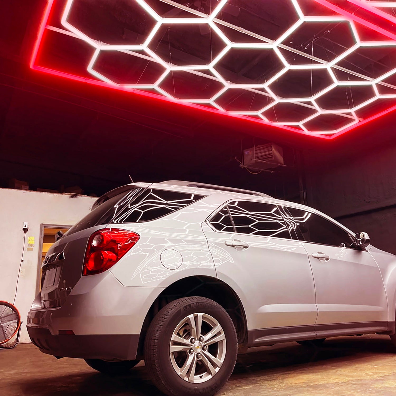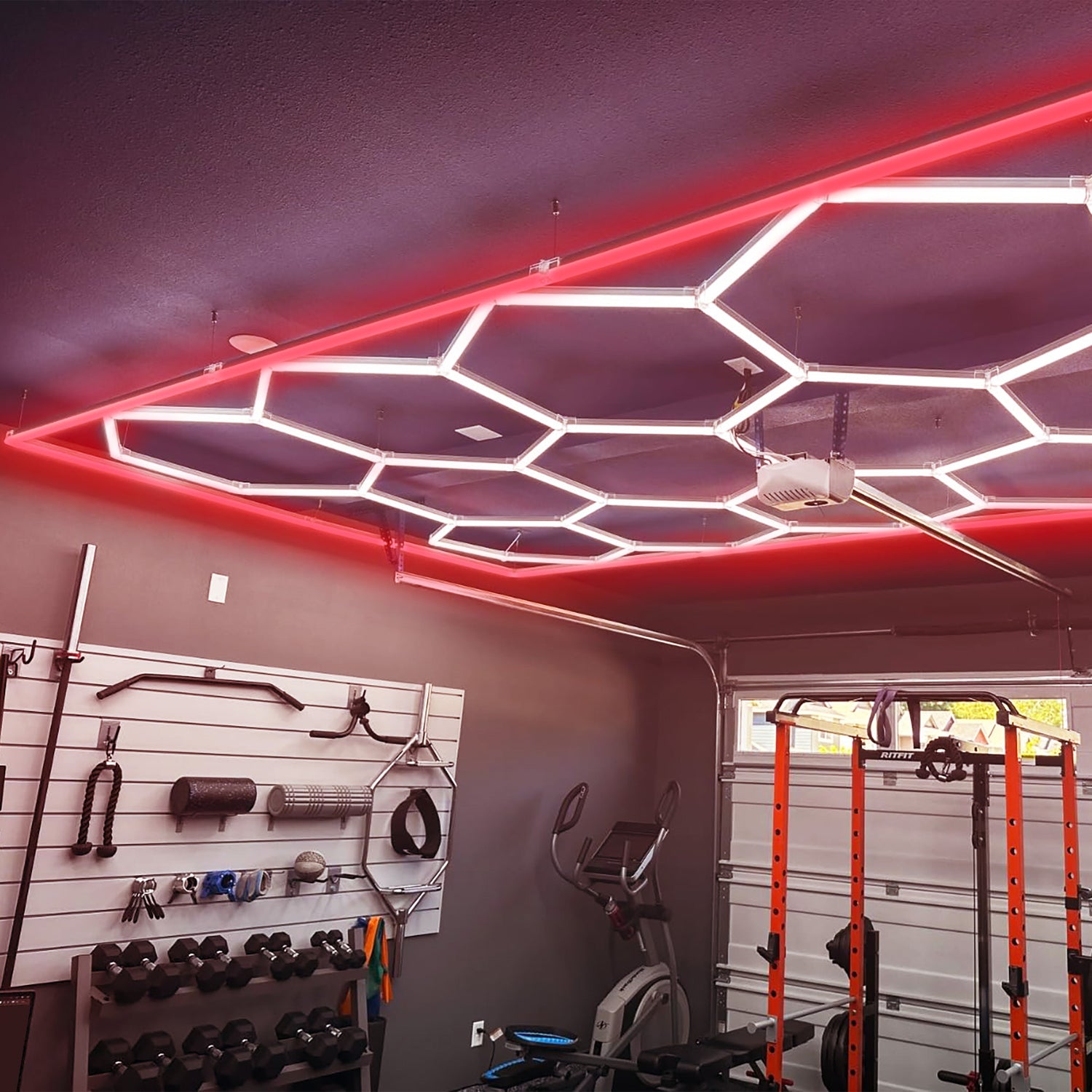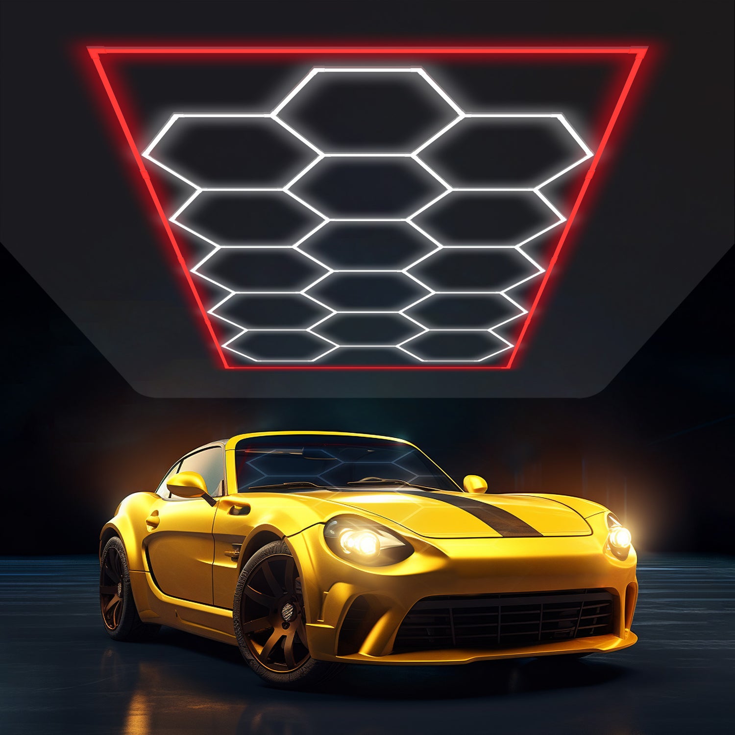 LED Hexagon Garage Lights 15 Hex with Red Border
