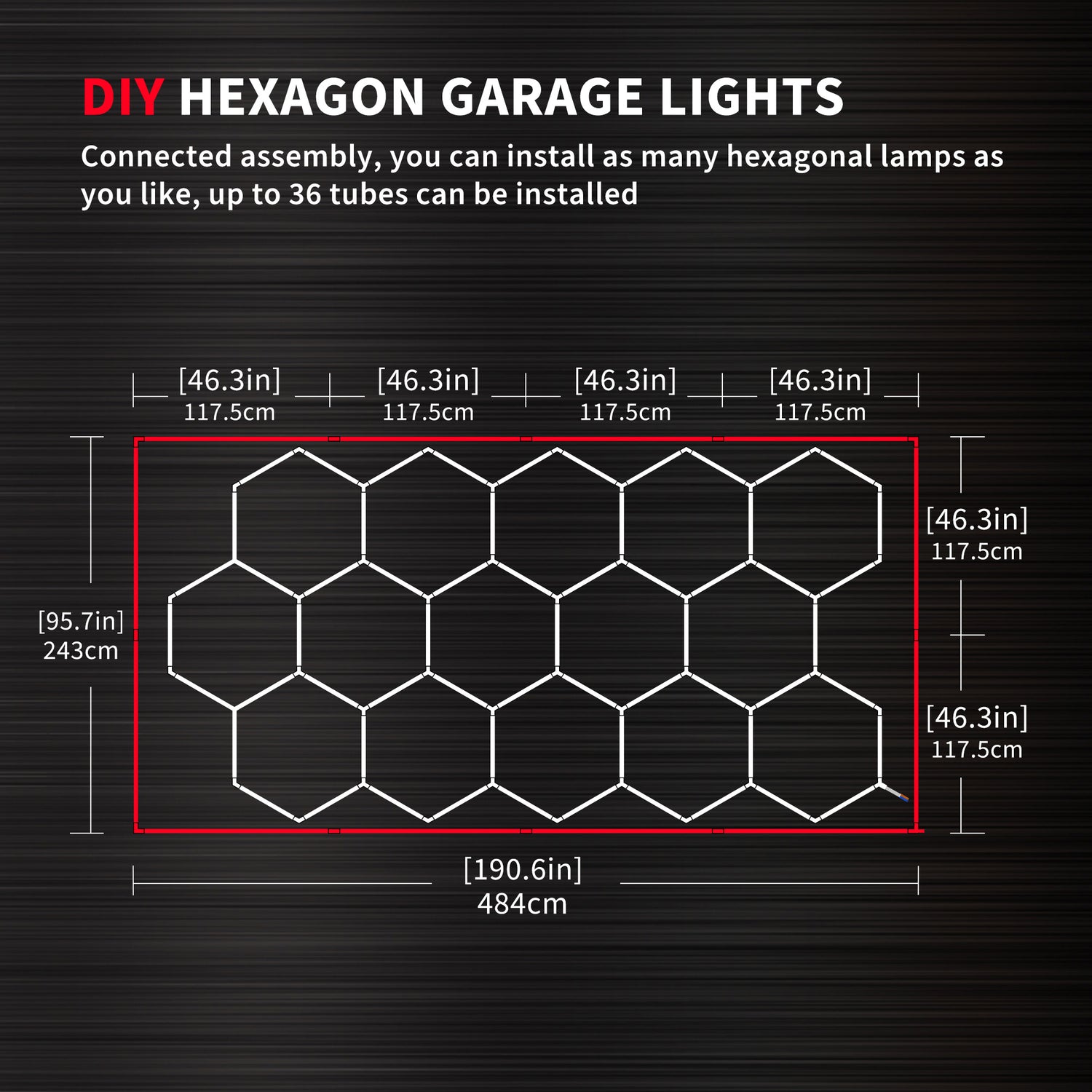 Excellent brightness: Hexagon lights for garage have ultra-high brightness and are suitable for most occasions such as garages, shops, basements and gyms. Hexagonal light with 110 lumens per watt and 6500k cold white light provide bright lighting in any situation, even without hurting your eyes or making you uncomfortable during the day.