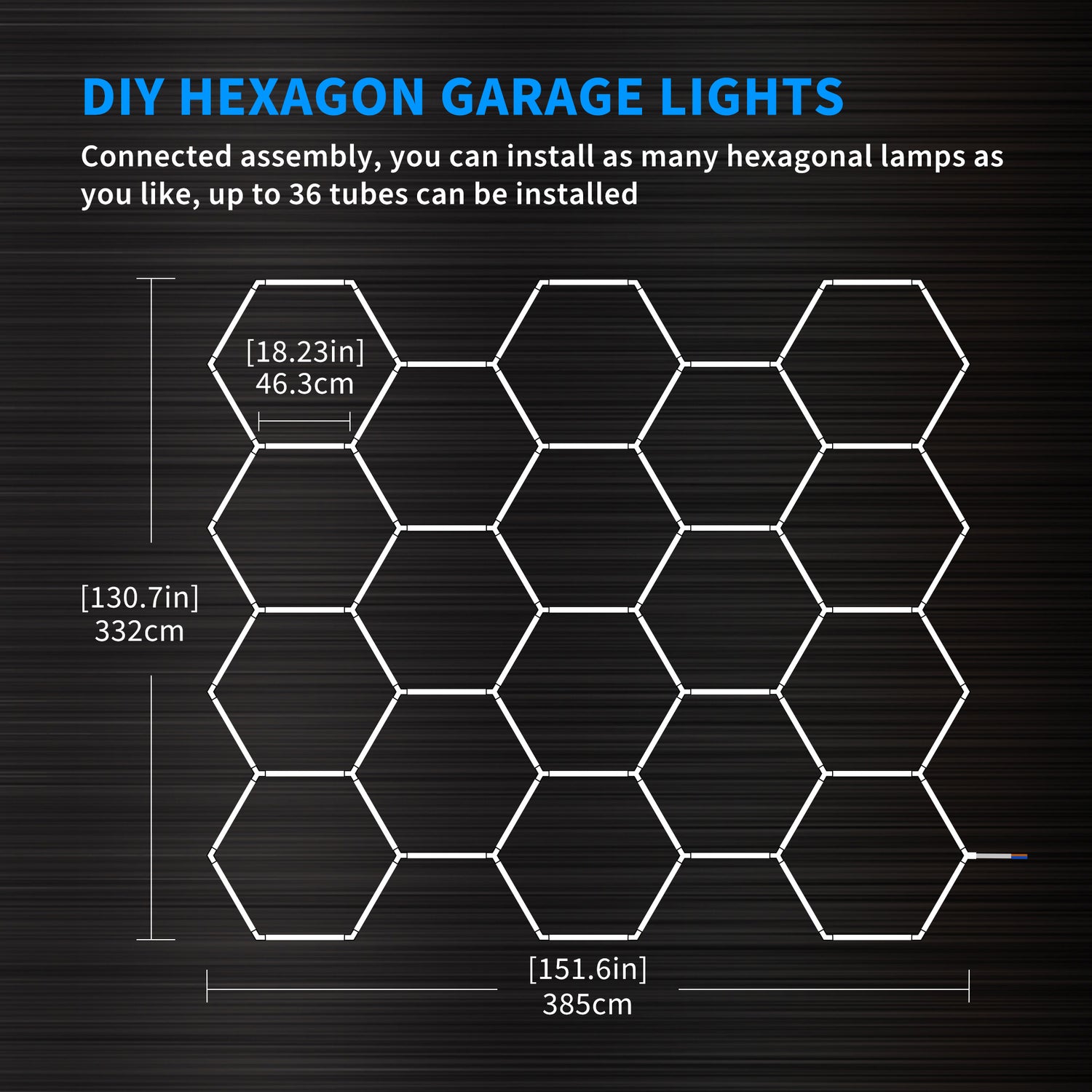 Excellent brightness:Hexagon lights for wall are powerful and efficient lighting solutions designed specifically for garages, providing bright and even illumination for the entire garage space. The high lumen output of 110m/w ensures sufficient light in every corner of the garage, maximizing visibility. At the same time, they can also add unique design elements to the garage and expand the coverage of lighting.