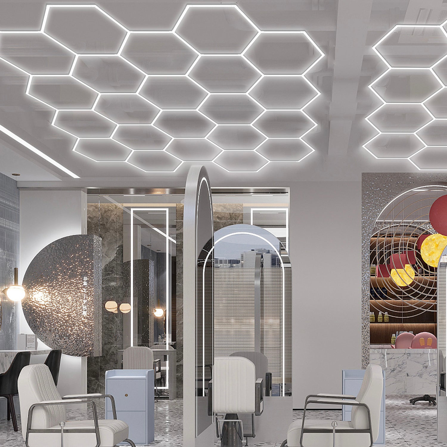 Excellent brightness:This led hexagon lights use high-quality LEDs to emit a uniform, stable, and bright pipeline, producing 110 lumens of brightness per watt without consuming electricity like traditional garage lights. The color temperature of 6500K ensures brighter and more natural light, and is also gentle on the eyes, making garage hexagon lights an ideal choice for various occasions such as garages, shopping malls, hair salons, and exhibition rooms.