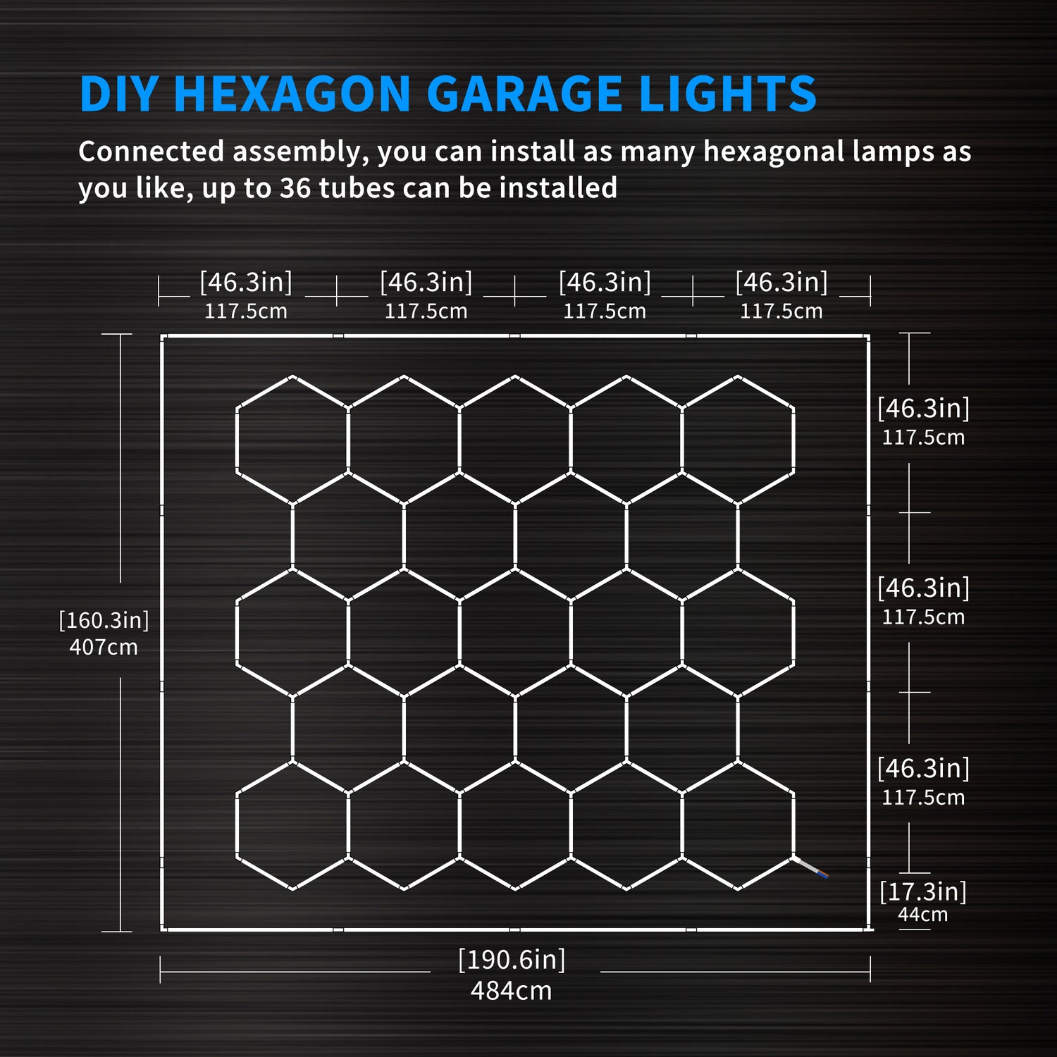 Durable and long-lasting: Our hexagon wall lights feature a unique design for soft, flicker-free light. These hexagon led lights garage feature a durable one-piece aluminum alloy housing and an upgraded PC shade to ensure excellent heat dissipation and high light transmission. Not only that, it also has an amazing lifespan of over 20,000 hours of use, so you don't have to worry about replacing or repurchasing your garage lights.