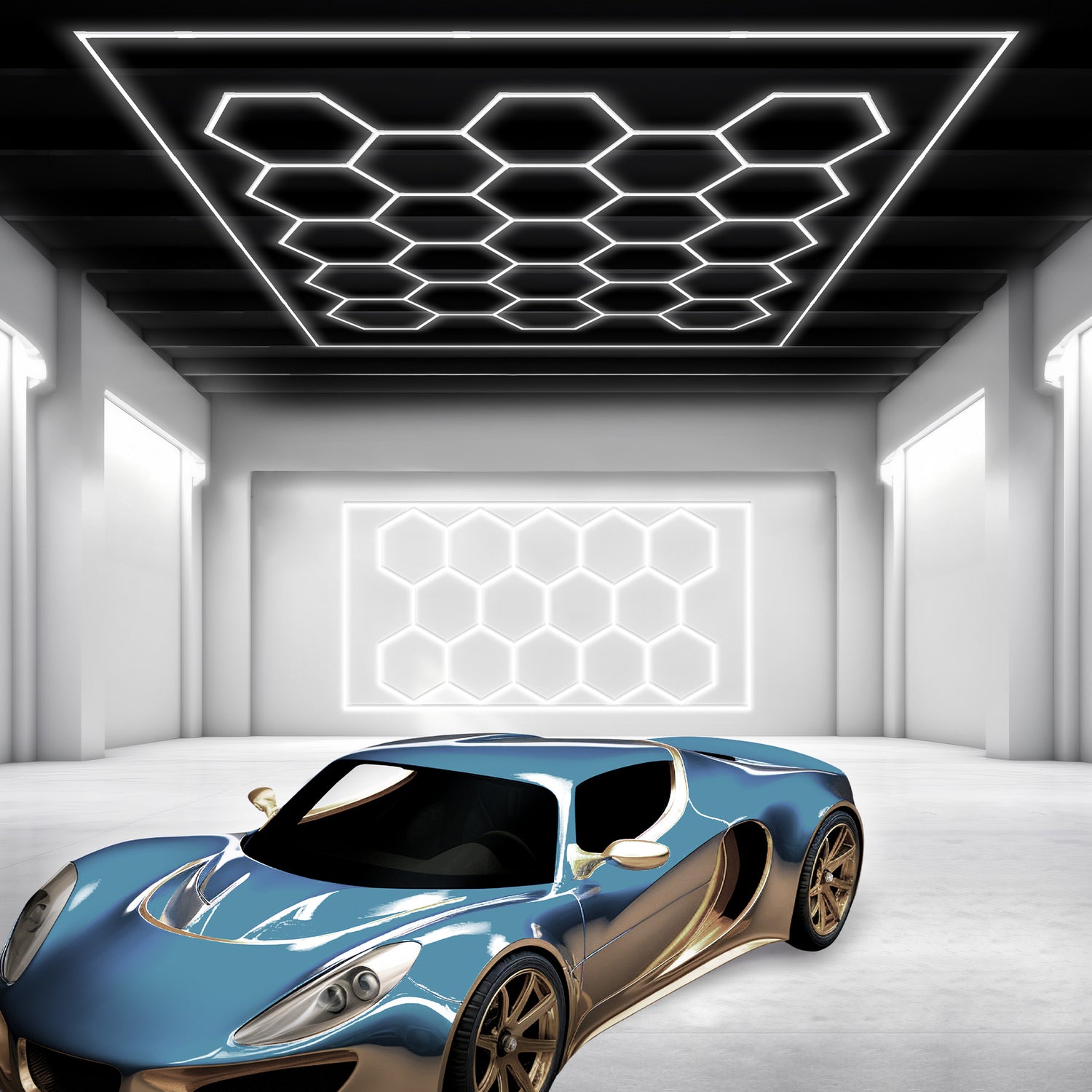 LED Hexagon Garage Lights 23 Hex with White Border - 6500k / 23 Hex is backordered and will ship as soon as it is back in stock.