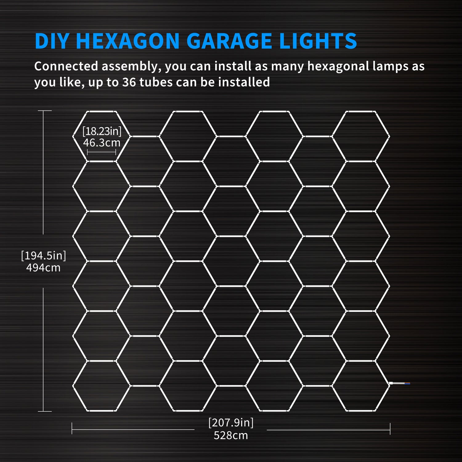Excellent brightness: Enhance your garage, workshop, or gym with our sleek, modern design of hexagonal LED lights We also offer large hexagon light patterns sets, whatever combination you want, we can customize it exclusively for you, providing bright, even lighting according to your needs. 6500K cool light, 110lm/w light, lets you enjoy a unique visual experience.