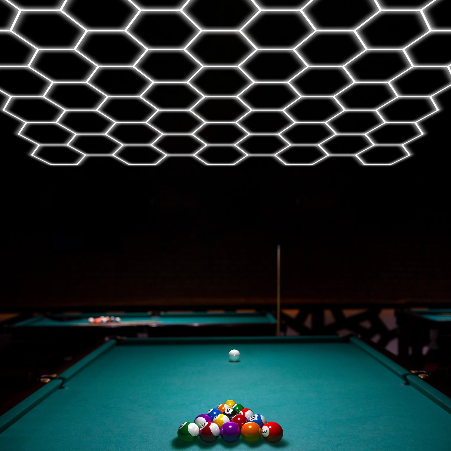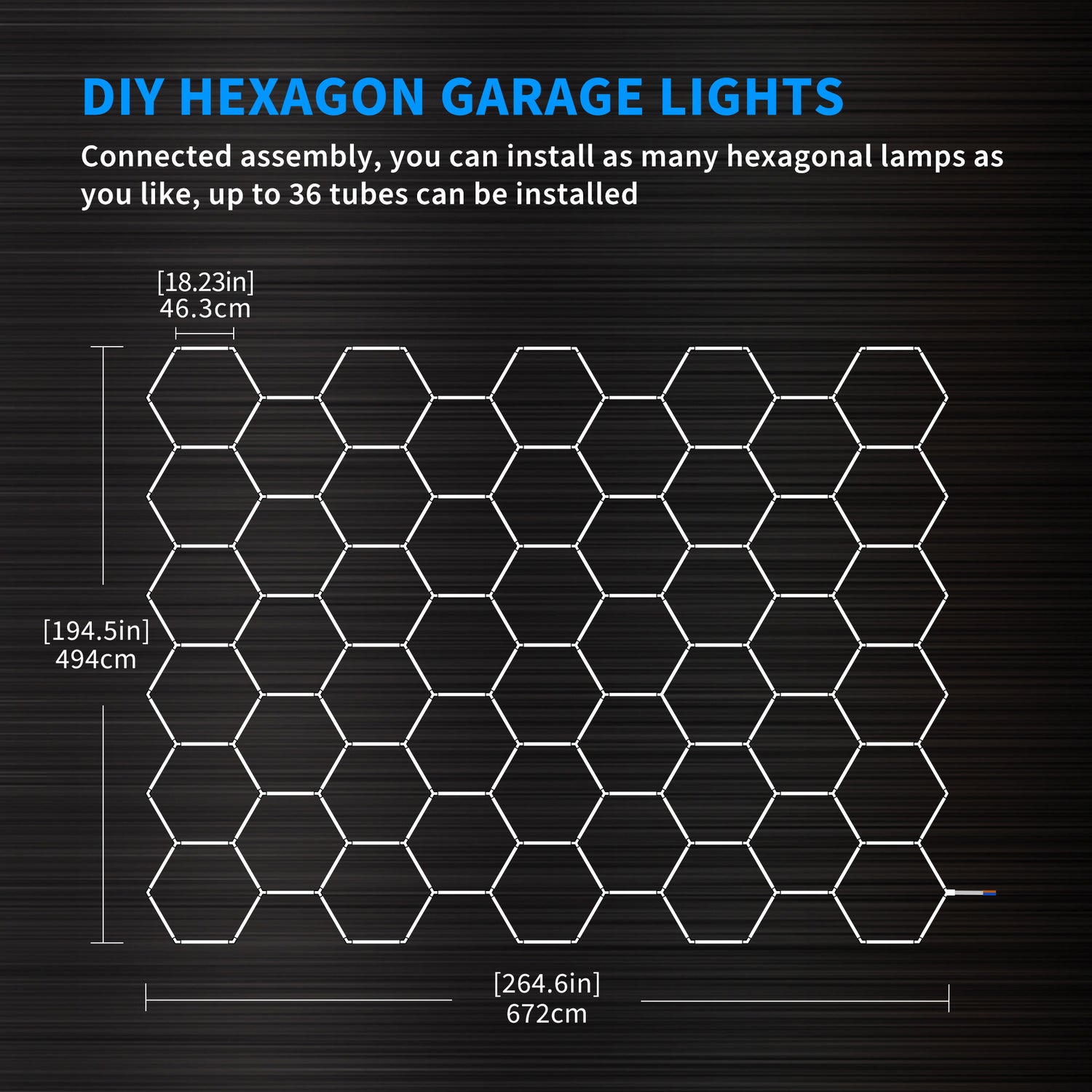 Excellent brightness:The hex lights have exceptional brightness and are suitable for most situations, like garage, shop, basement, and gym. With 110 lumens per watt and 6500k cool white light, the honeycomb LED light delivers brilliant illumination in any situation and does not even harm the eyes or make you feel uncomfortable during the day.