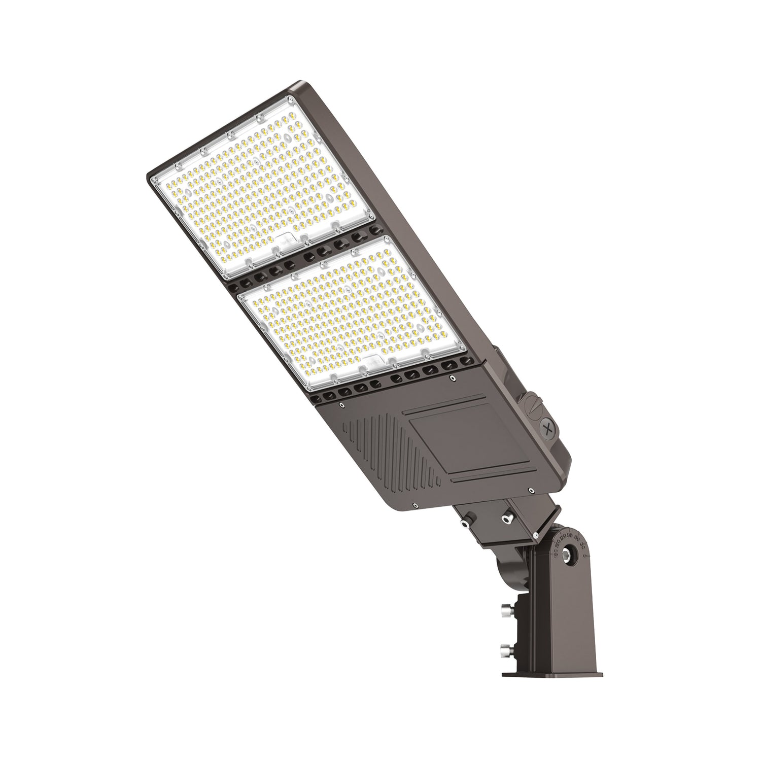 Specifically, the Slip Fitter quickly mounts to utility poles, allowing for optimal light direction by easily adjusting the angle. The trunnion is stable on a flat surface, making parking lot lights LED suitable for a variety of installations. Round and Square A&N brackets allow the area lighting to be mounted on round or square poles, increasing compatibility with different types of poles. These features simplify the installation process and ensure that the LED shoebox light can be safely and efficiently installed in a variety of situations.