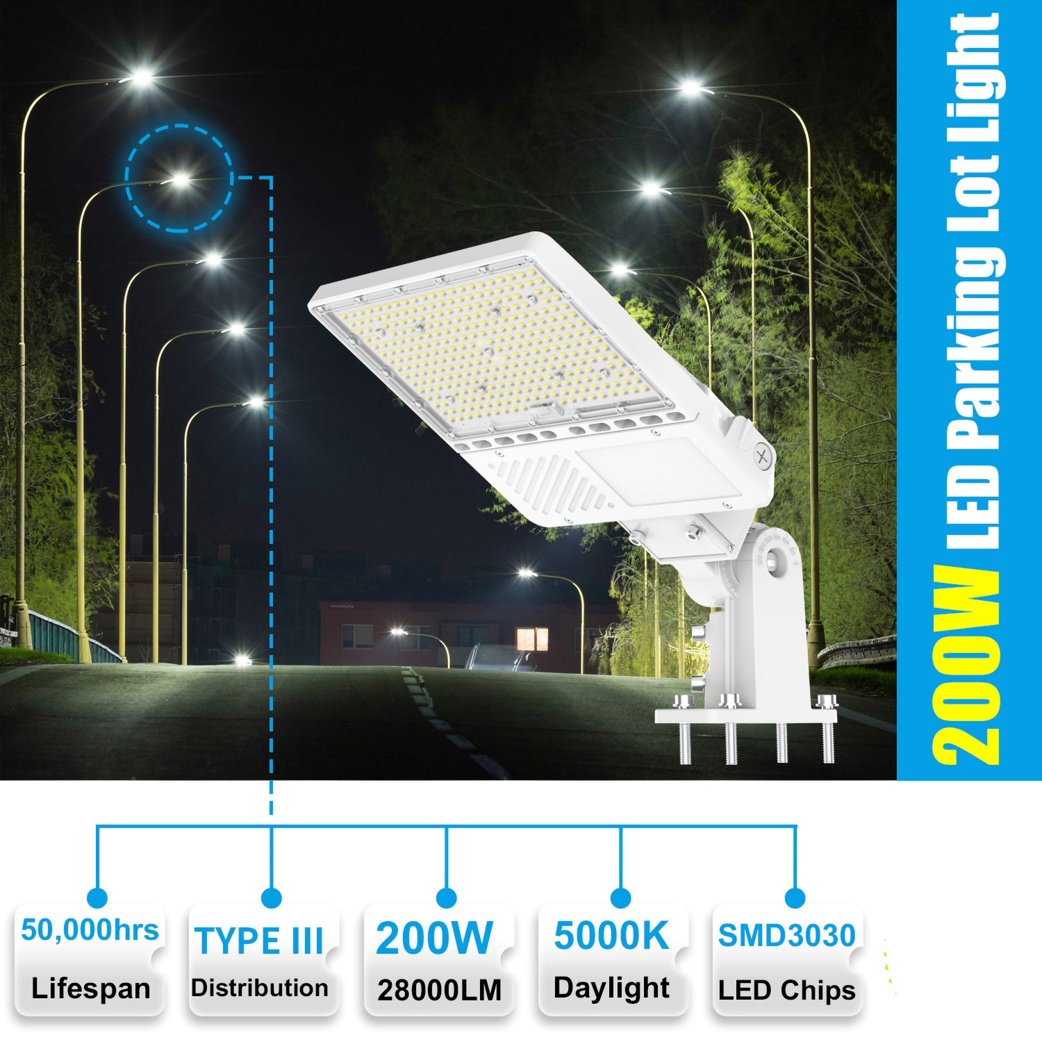LED Parking Lot Lights - White Lights with Photocell 200W
