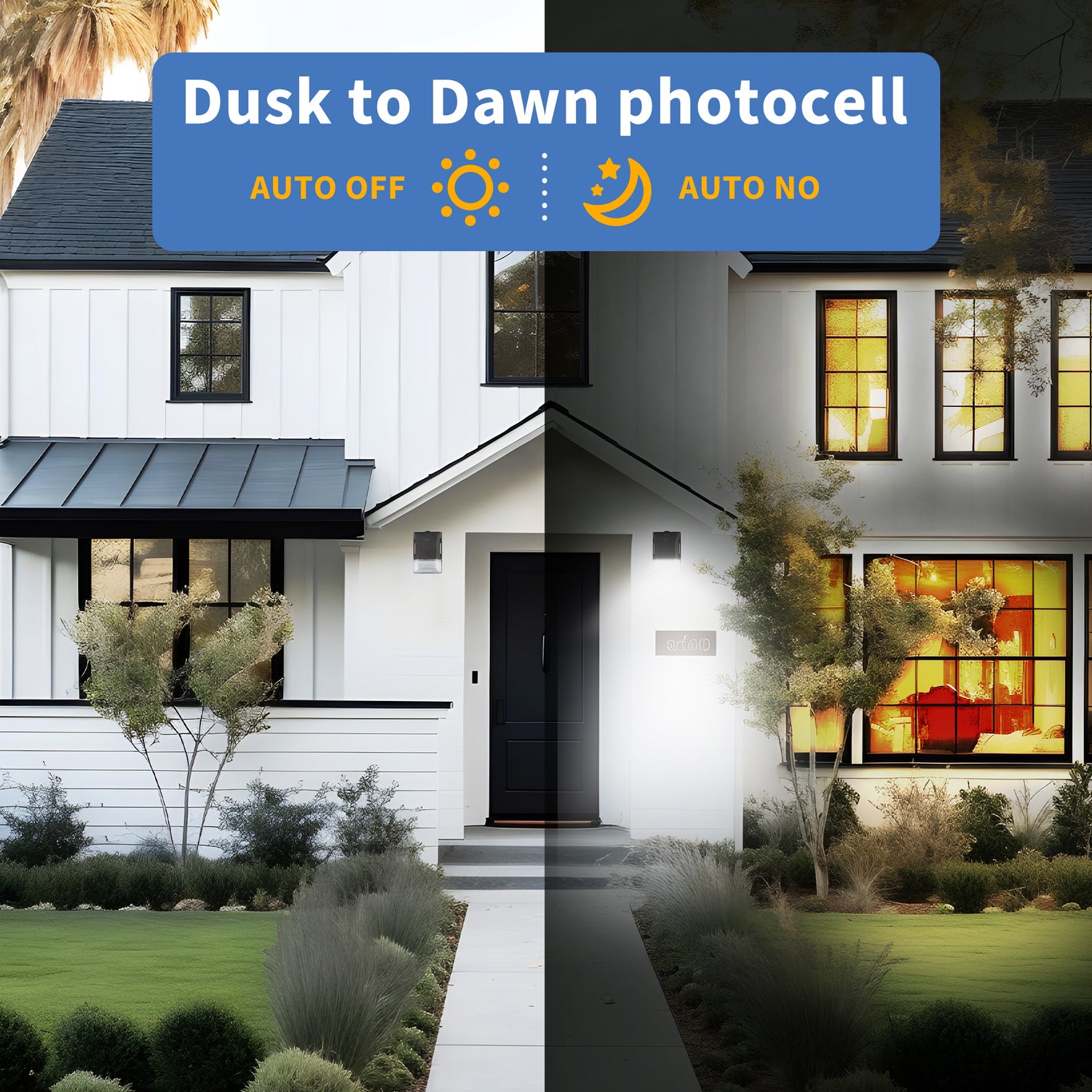 High-level brightness with photocell: Wall pack LED lights provide a high brightness output of 125-135lm/w with very low wattage. These mini LED lights are a perfect alternative to traditional lighting fixtures, especially those with high wattage, and can also save up to 85% of energy. More importantly, the mini LED light is also equipped with a photocell from dusk to dawn, which automatically turns on/off by detecting the ambient brightness, providing you with bright lighting immediately whenever you need it.
