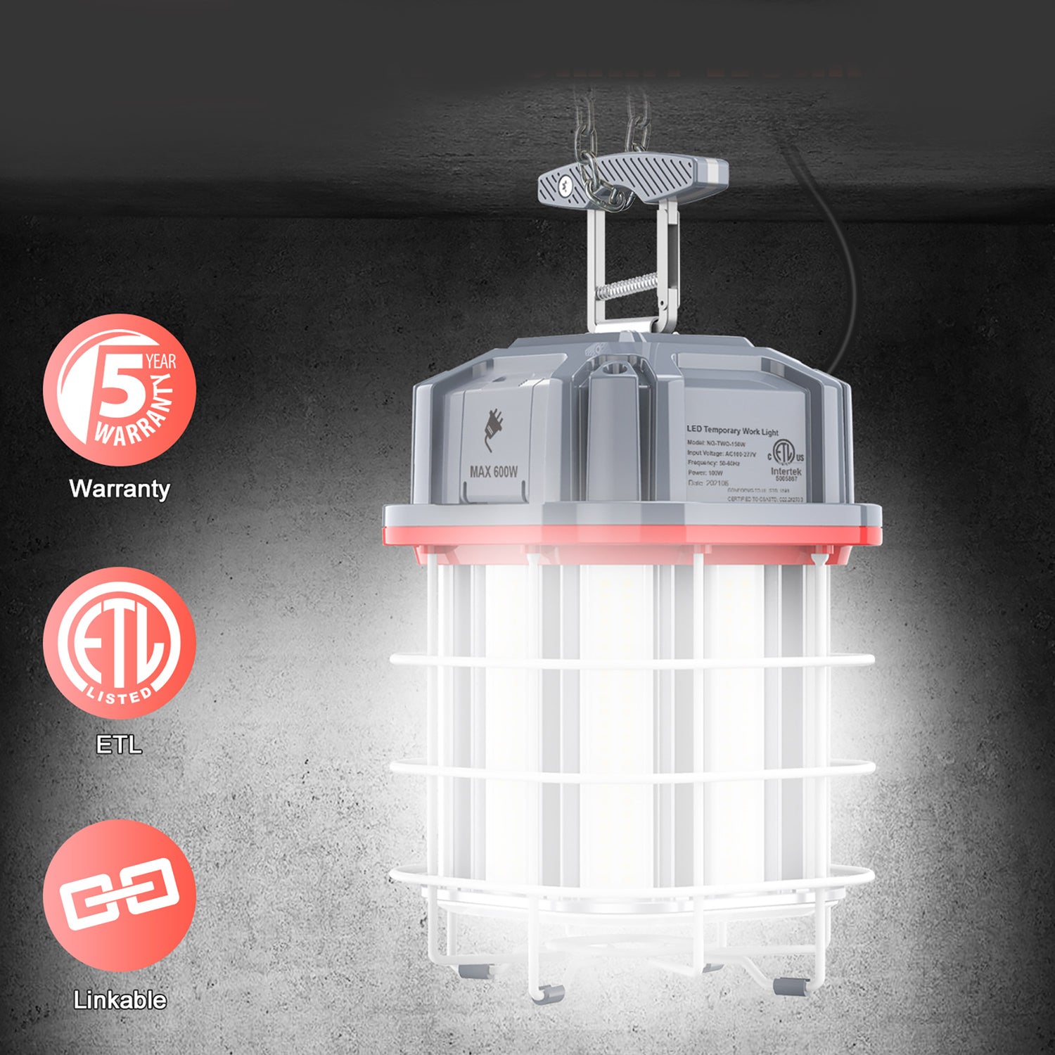 Temporary LED Work Light-Hanging Indoor&Outdoor Construction lights 80W-150W - 80w / 100-277V is backordered and will ship as soon as it is back in stock.